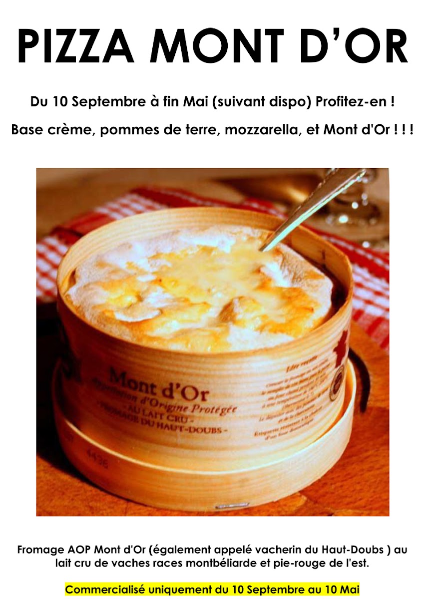 Pizzas à base de produits typiques de diverses régions. Aveyronnaise, Francomtoise, Niçoise, Vosgienne, etc ..